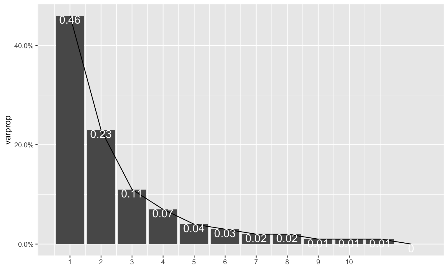 varprop = round(eigval/sum(eigval), 2) #proportion of var explained by each PC